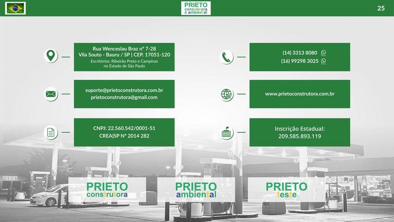 Tendo em sua direção profissional com grande experiência atuando desde 1993 para as principais distribuidoras do país (Shell, Ipiranga e Petrobrás), na Construção, Reforma e Licenciamento Ambiental de postos de combustíveis, viabilizando a melhor opção técnica e financeira.